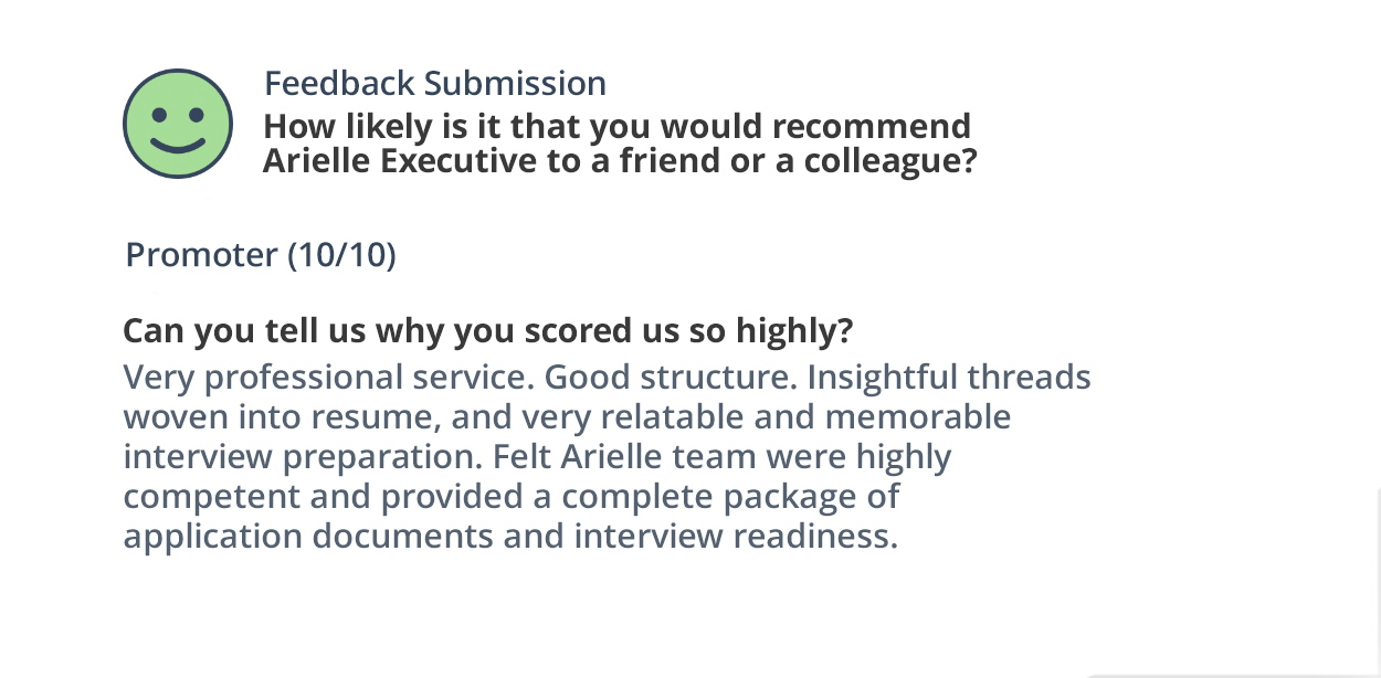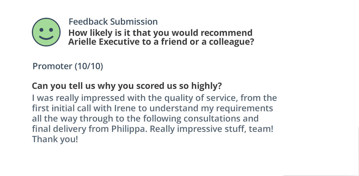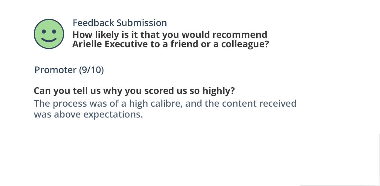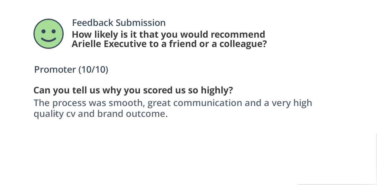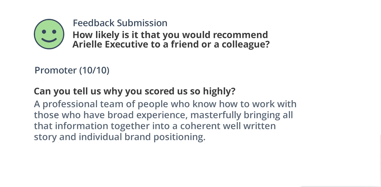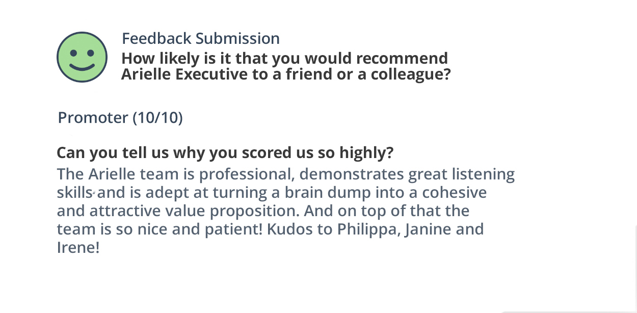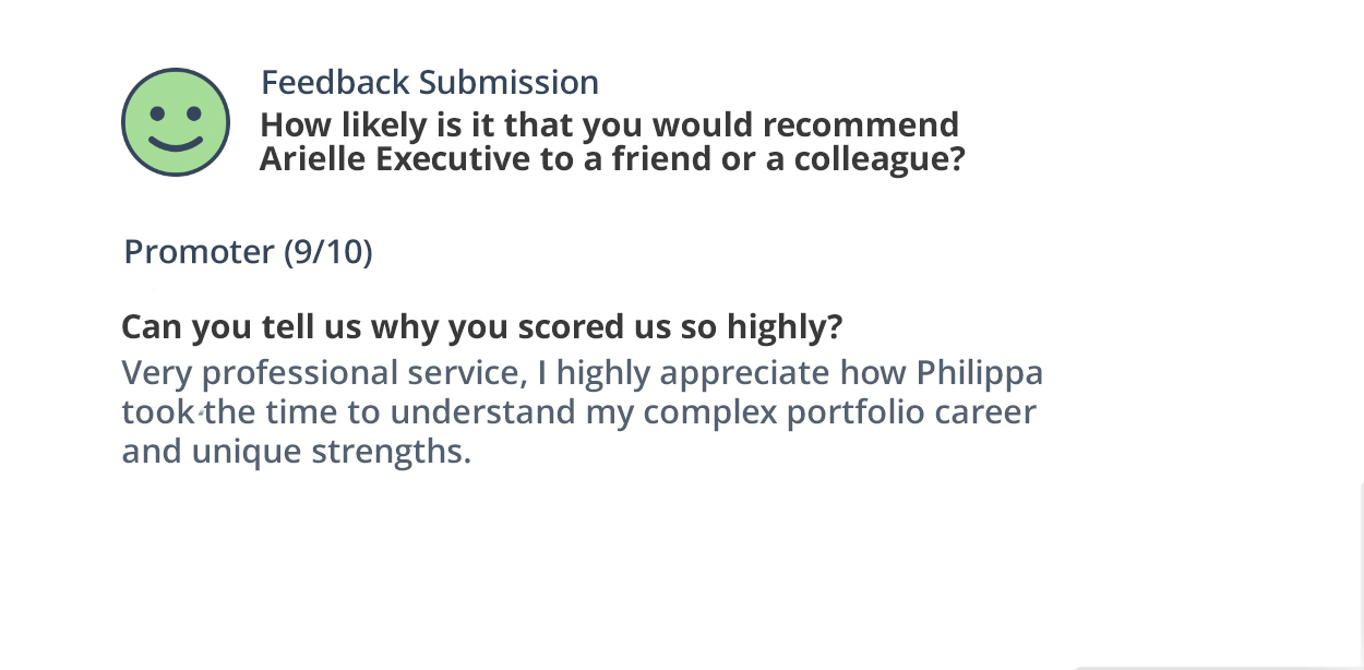 "The results were simply amazing! I have since taken on a very exciting assignment and am very grateful for the fantastic result, which was in no small part as due to the work done with the Arielle team."